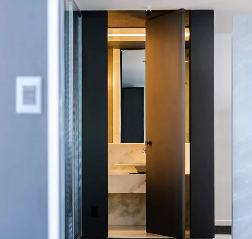 These doors open with the help of a keypad, proximity reader like a scanner and a card reader like those found in hotel rooms.